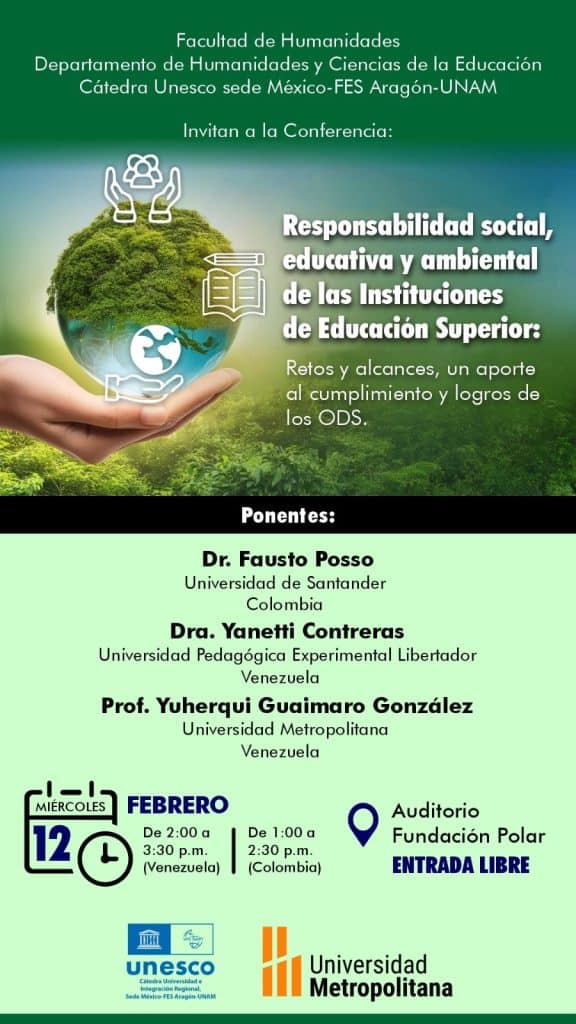 Invitan a la conferencia: Responsabilidad social, educativa y ambiental en las Instituciones de Educación Superior. Retos y alcances, un aporte al cumplimiento y logros de los ODS.